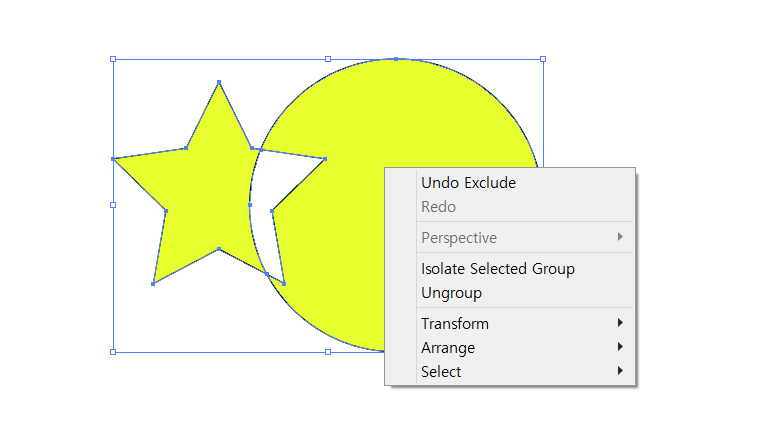 이제 Shape Modes의 마지막, 익스클루드 Exclude를 클릭합니다.