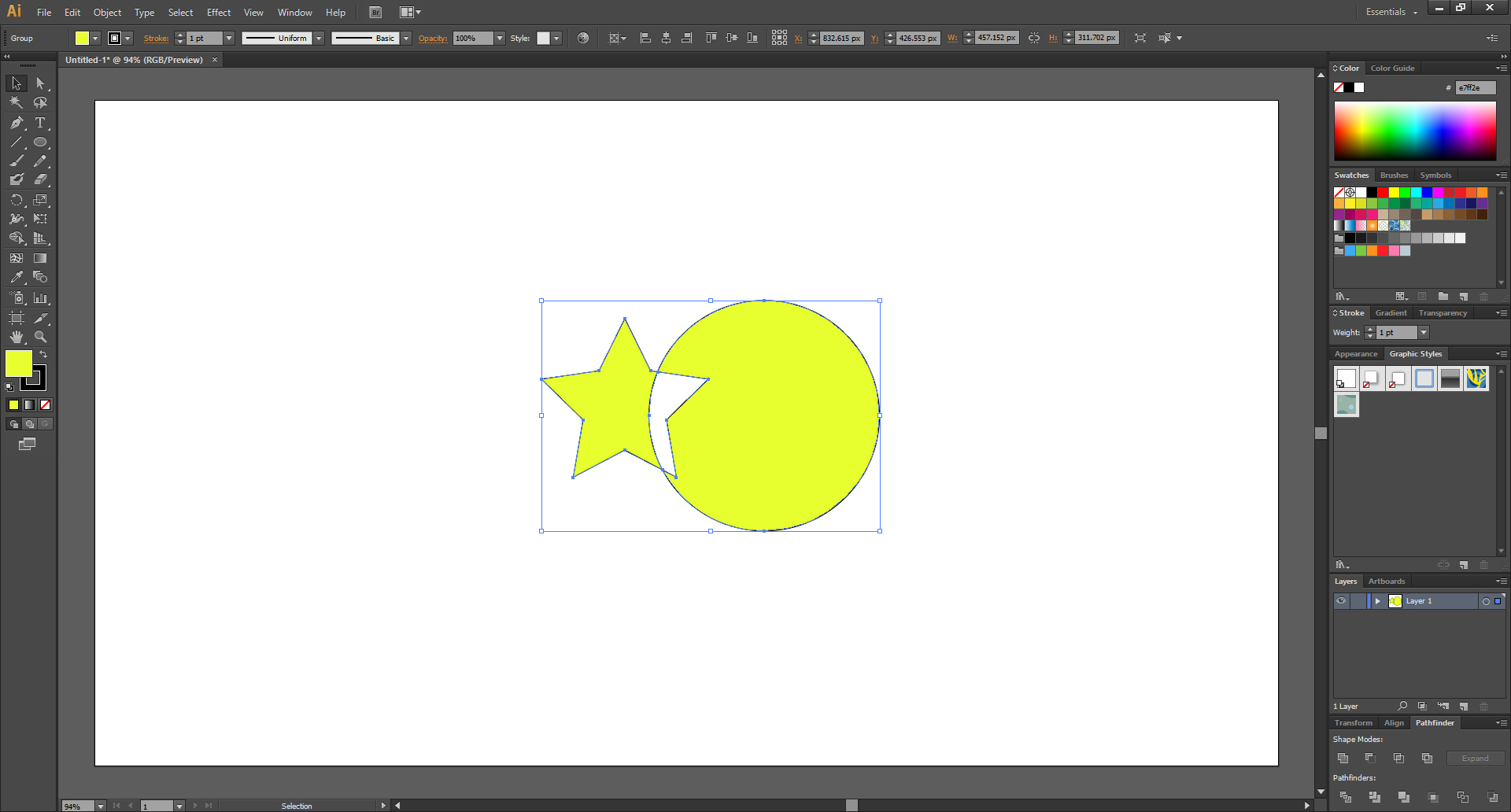그리고 이곳, Shape Modes의 첫 번째인 유나이트 Unite를 클릭합니다.