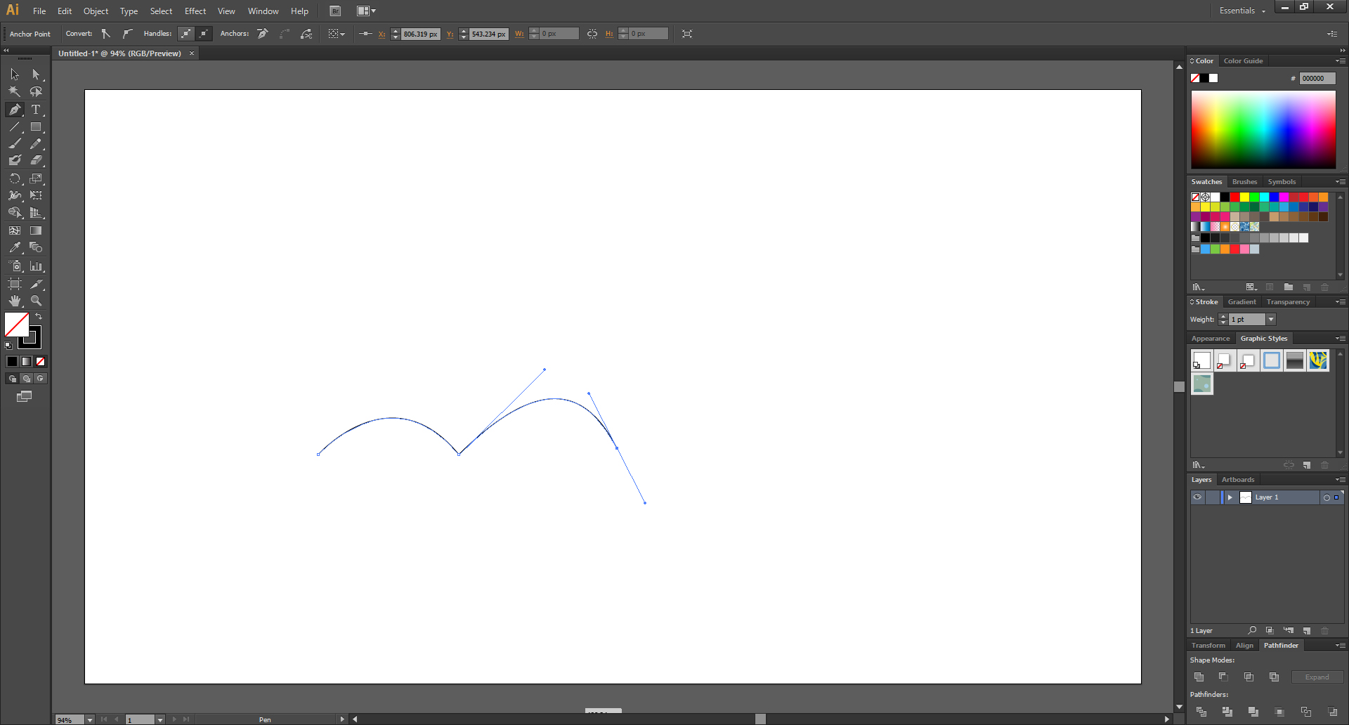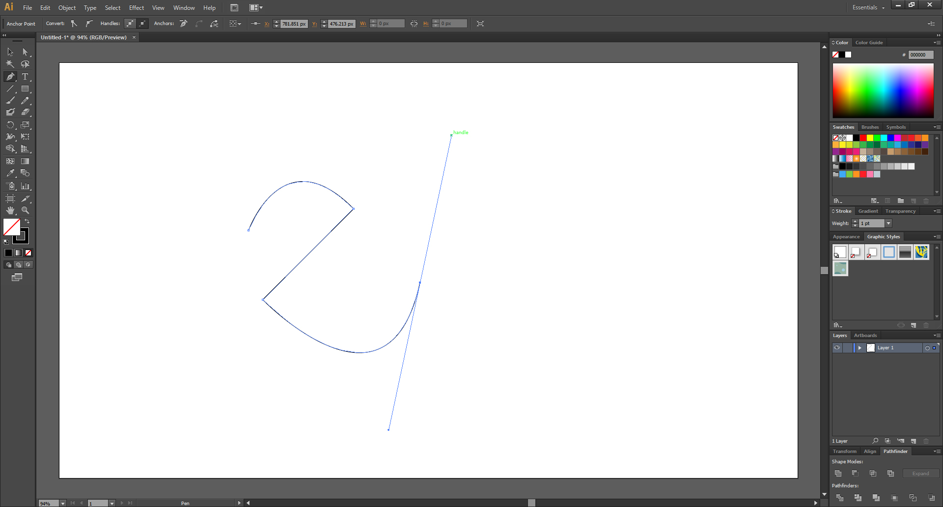 펜 툴로 곡선 그리기는 직접 해보지 않으면 안됩니다. 몇번 해보면 금방 감이 잡힐겁니다.