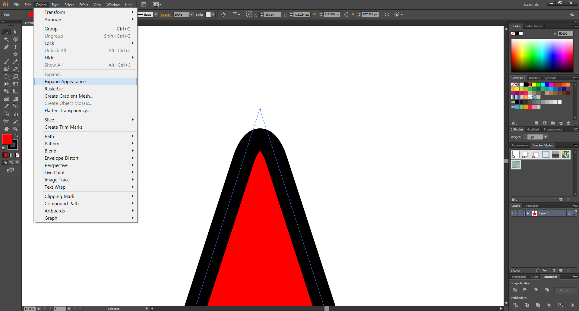 상단 메뉴의 Object > Expand Appearance 를 클릭해줍니다.