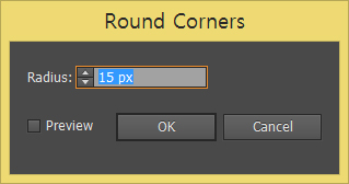 상단 메뉴의 Effect > Stylize > Round Corners... 를 클릭해줍니다.