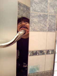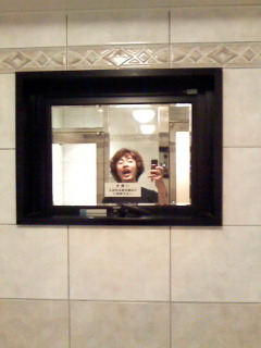 그리고 그 헤어스타일로 호텔 욕실을 청소하다가 찍은 이상한 표정의 셀카.