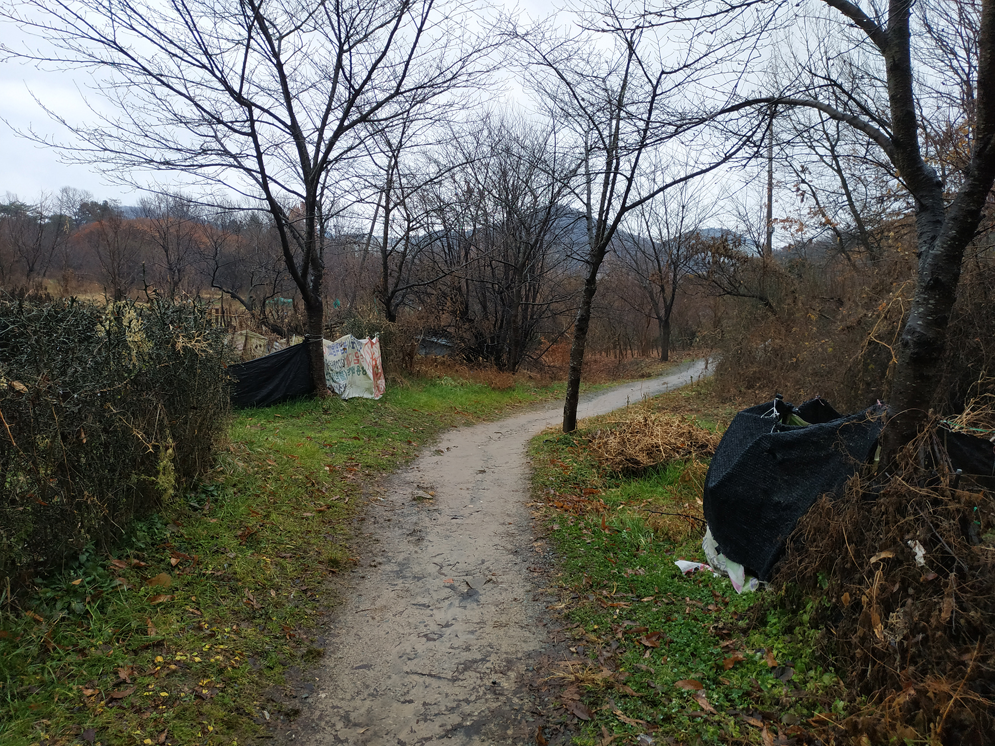 마치 시골같은 이 흙길을 걷기로 합니다.