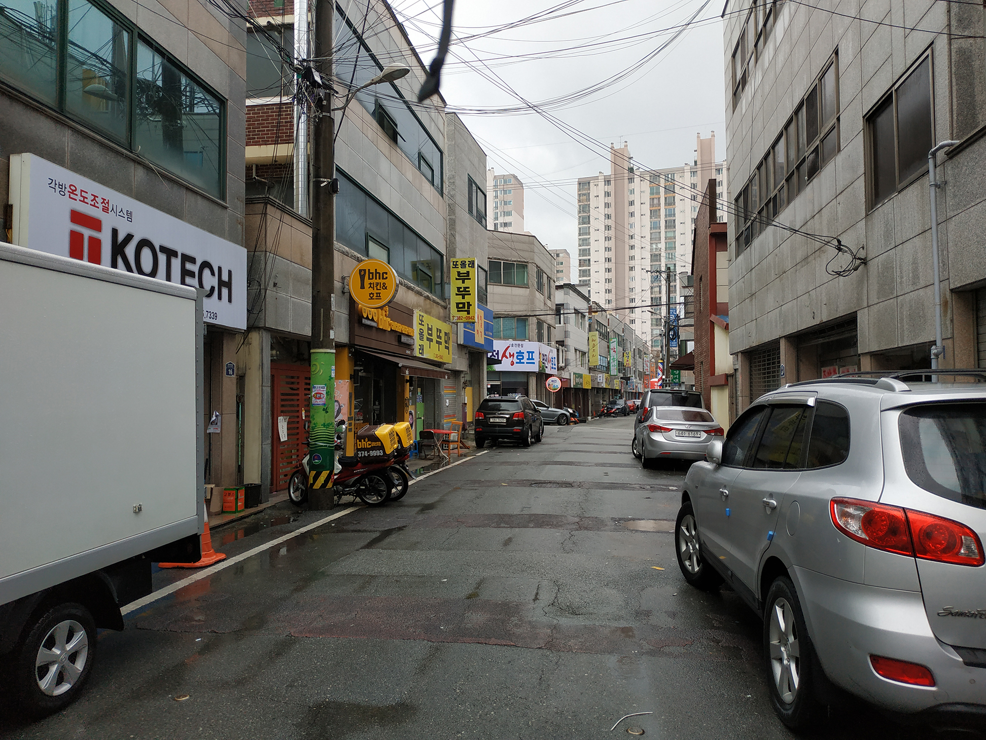 저 멀리 보이는 아파트 단지의 안쪽까지 더 들어가야 합니다.