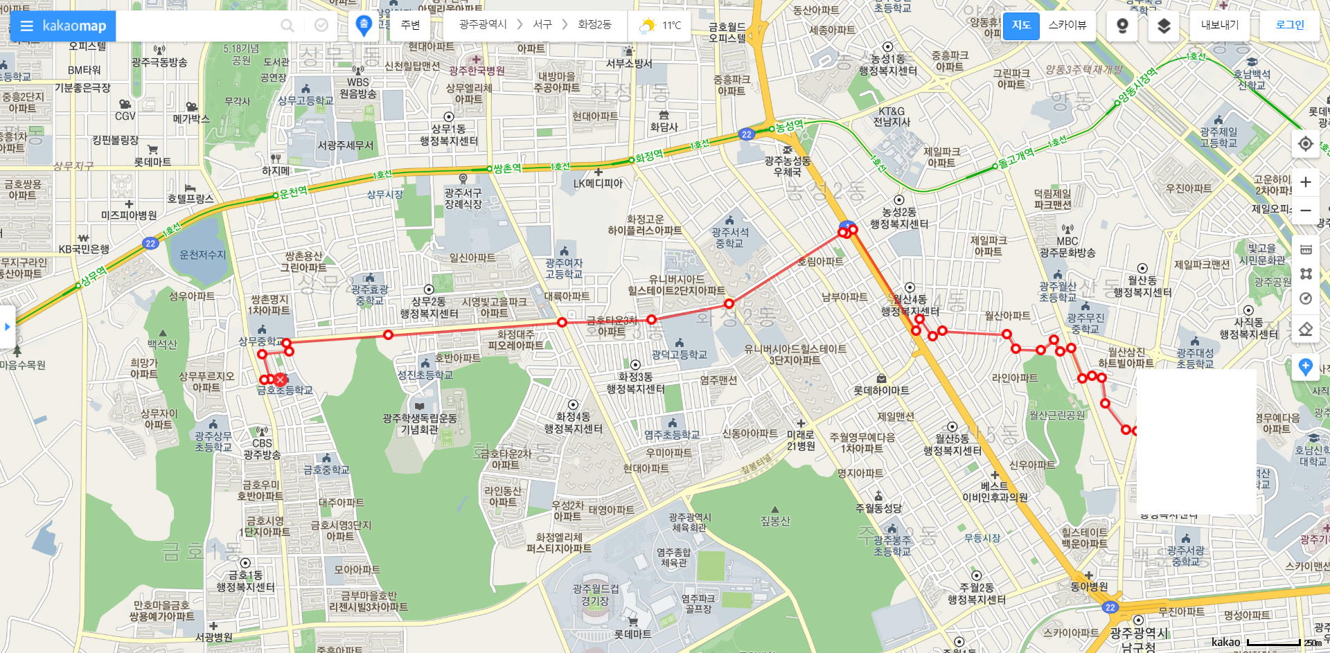 광주 금호지구까지 걸어서 이동했습니다.