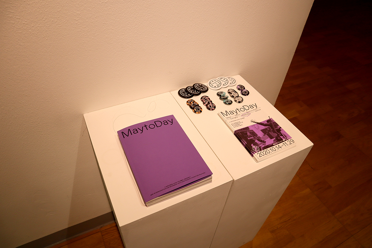 배치도 아래에는 May to Day 책자와 팜플렛, 배지가 있습니다.