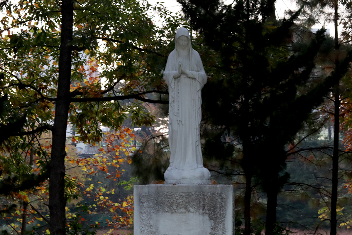 전에도 찍었던 성모 마리아상을 멀리서 찍고,