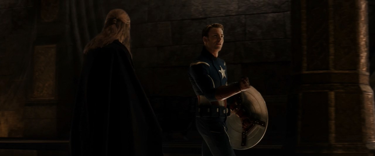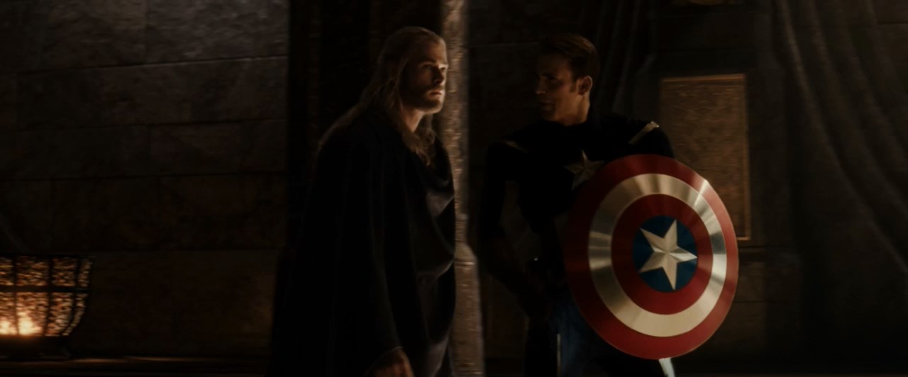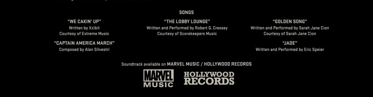 위의 씬에서 캡틴 아메리카의 OST로 삽입된 곡이 잠깐 흘러나옵니다.