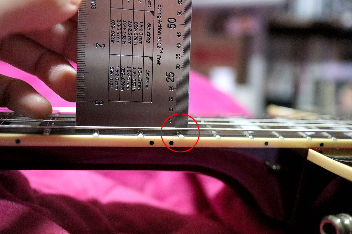 12프렛의 프렛과 줄 간격을 재봅니다.
