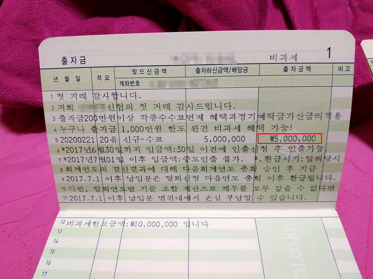 작년 이맘때쯤에 신협에서 출자금 통장과 정기예탁금 통장을 만들고 썼던 글입니다.