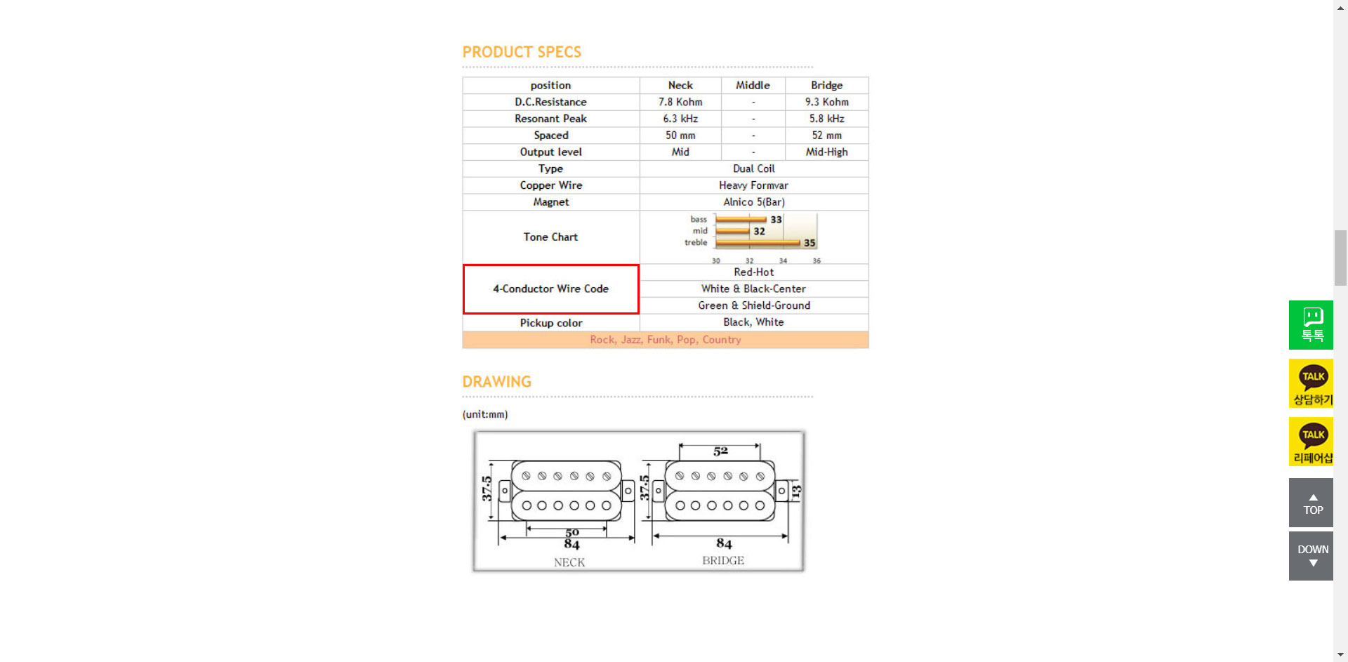 제가 교체를 했던 테슬라 픽업 VR-3도 4 컨덕터 픽업이었다는 것을 확인하실 수 있습니다.