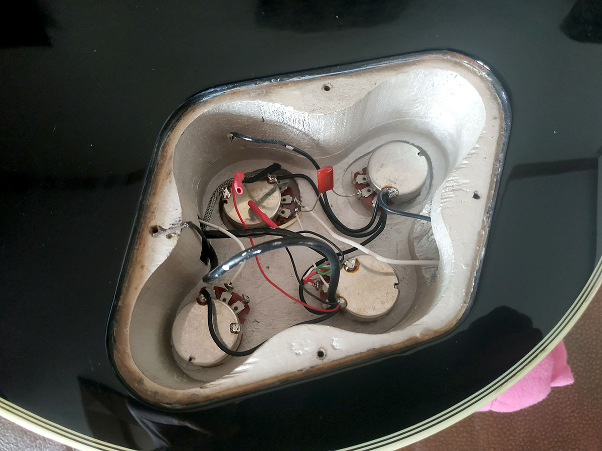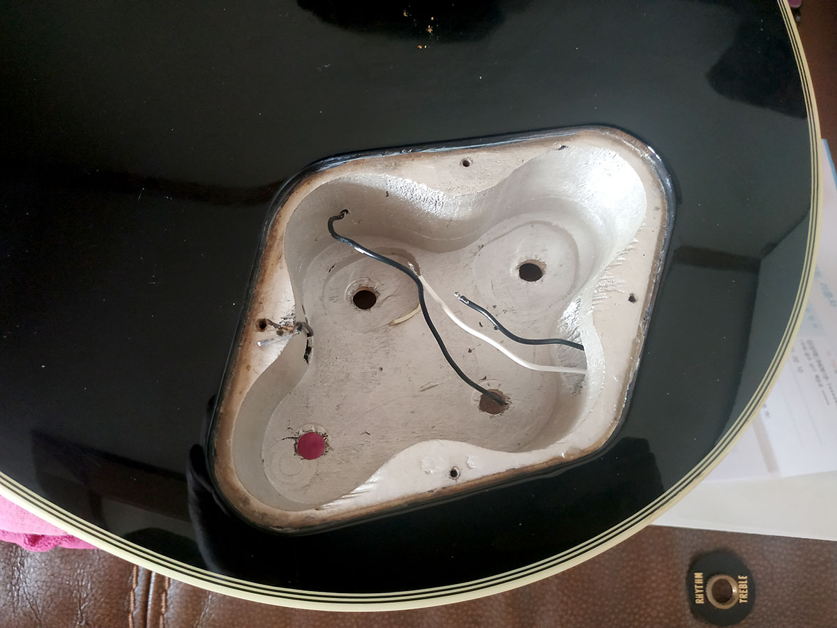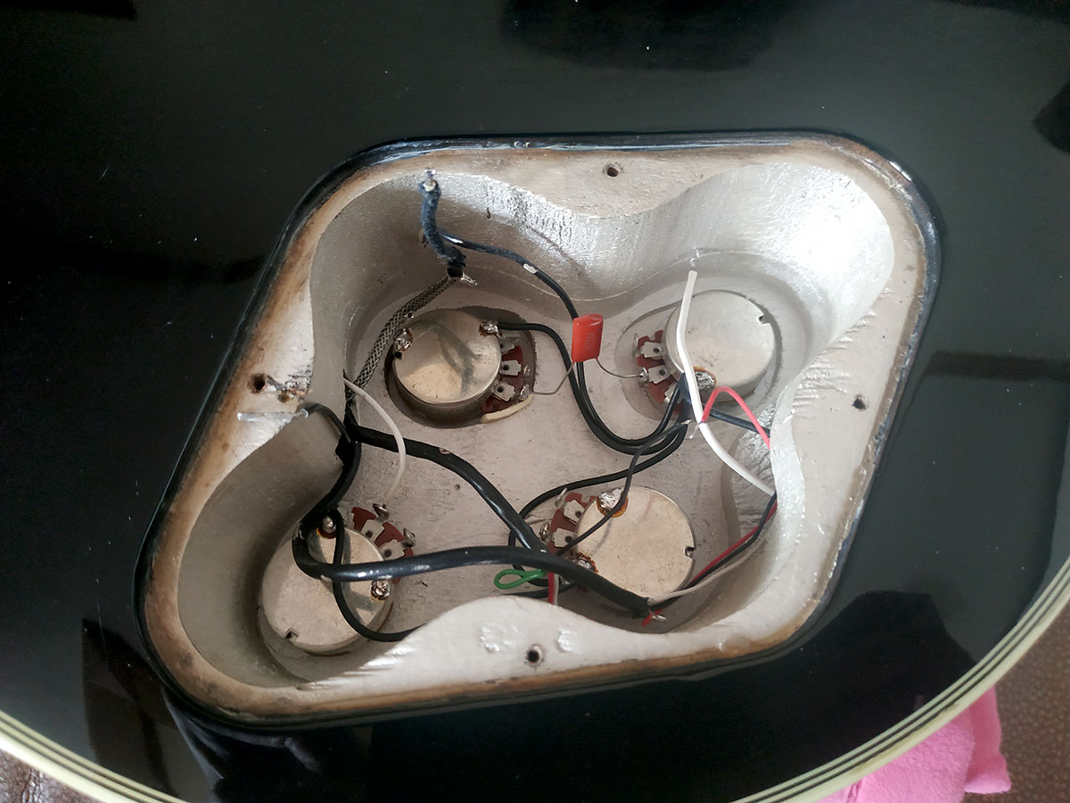 내부에서 그렇게 두 가닥의 선을 이어놓은 채로 숨겨두고 남은 2가닥만 밖으로 빼내면 2 컨덕터 픽업이 되는 것입니다.