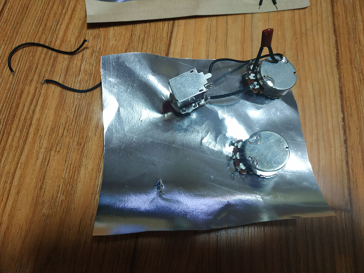 싱글로 사용을 할 때에도 안쪽 픽업을 사용할 것인지.. 바깥쪽 (폴피스가 나사 형태로 된) 픽업을 사용할 것인지, 병렬로 연결할 것인지.. 다양한 옵션을 위해서 4 컨덕터로 만들어보기로 합시다.