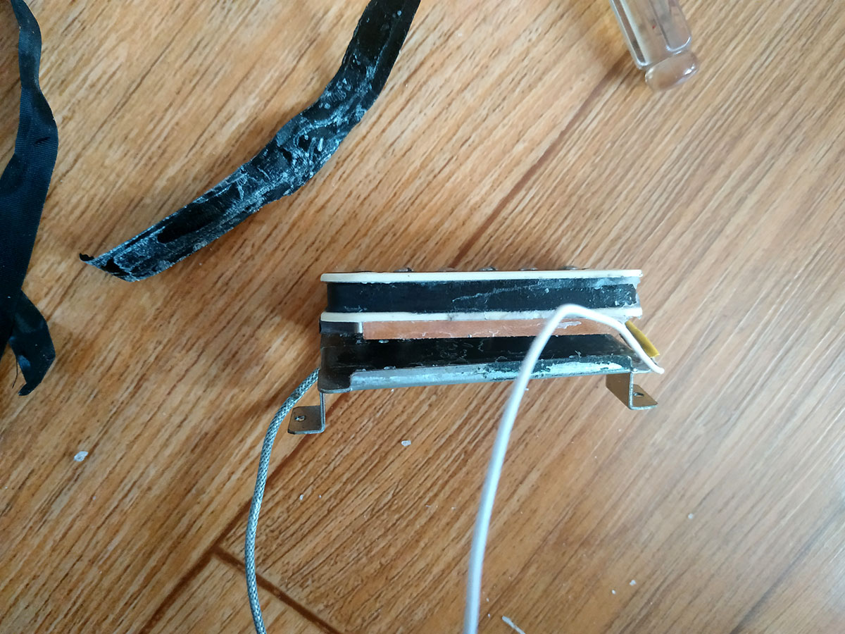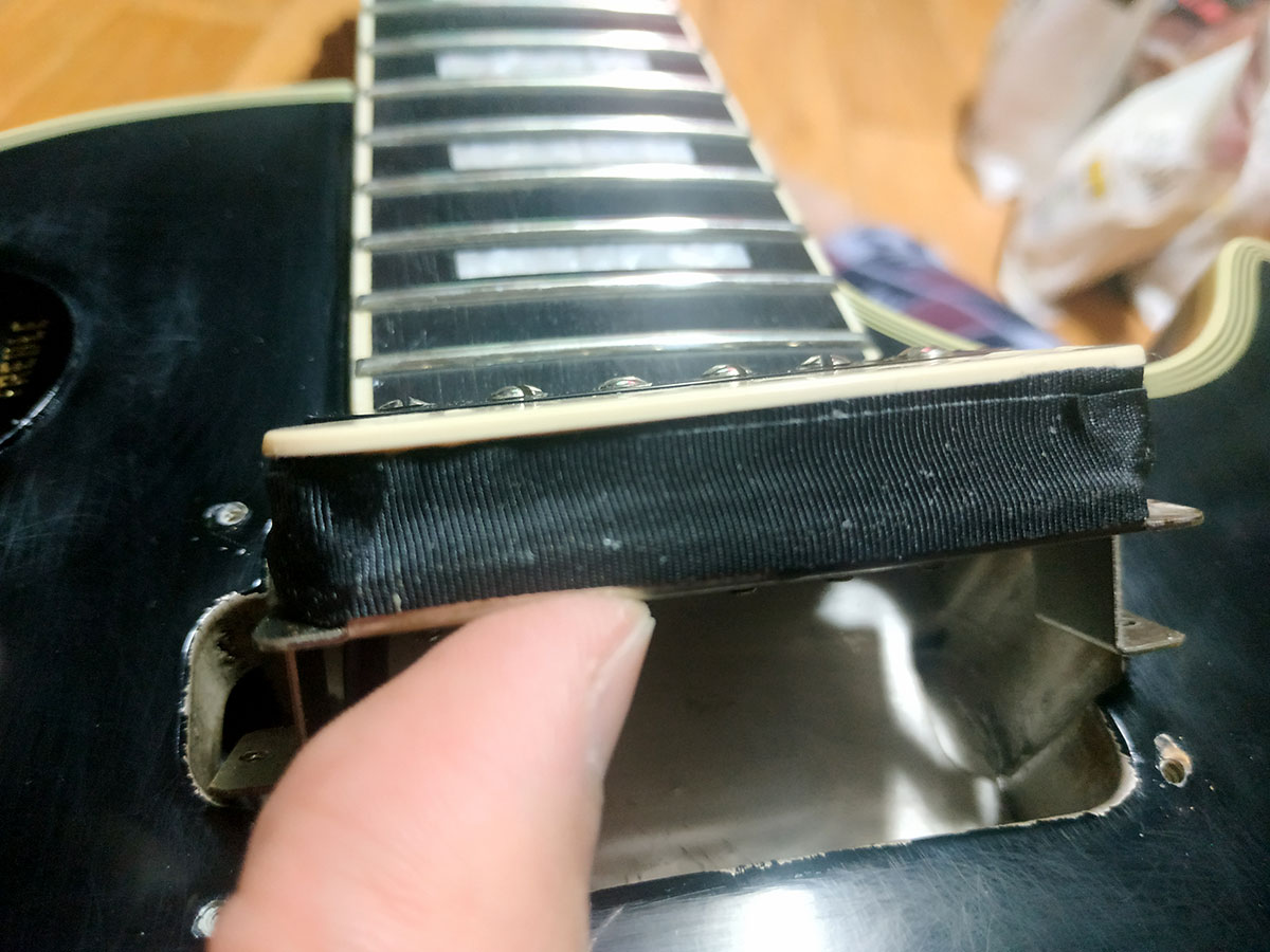 그리고 픽업을 감싸고 있는 아세테이트 테이프를 벗겨서 제거합니다.