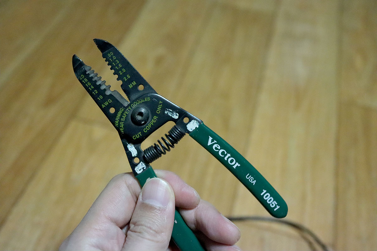 와이어 스트리퍼로 선을 잘라줍니다.