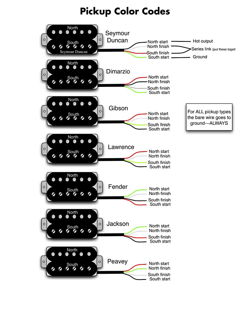 흔히 쓰이는 픽업들의 색상별 선 구분입니다.