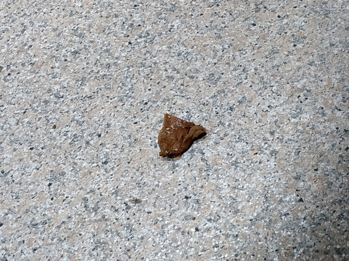 자르다가 고기를 크게 한점 바닥으로 떨어뜨리셨습니다...