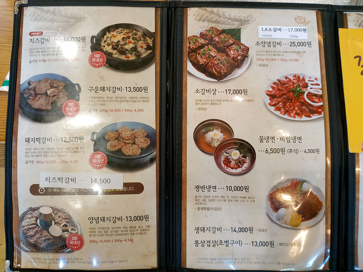 메뉴판에 빛이 반사가 된 채로 찍히긴 했지만.. 중요한 것들은 다 보입니다.