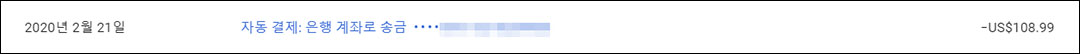 제가 항상 빠짐없이 기록하는 저의 가계부 어플에 남은 기록입니다. 정확히 108.99 달러가 들어왔었습니다.