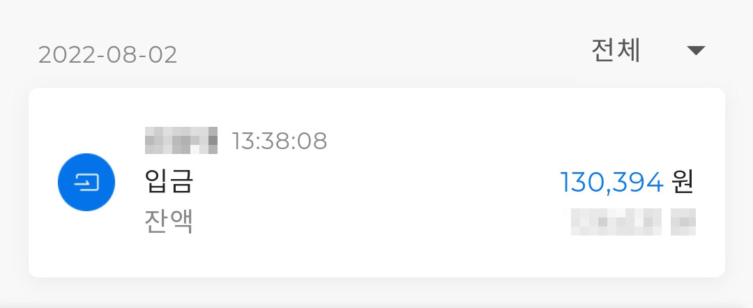 130,394원이 들어왔습니다.