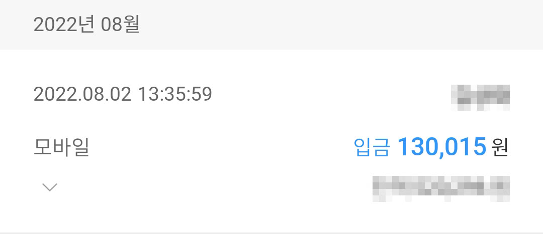 130,015원이 들어왔습니다.