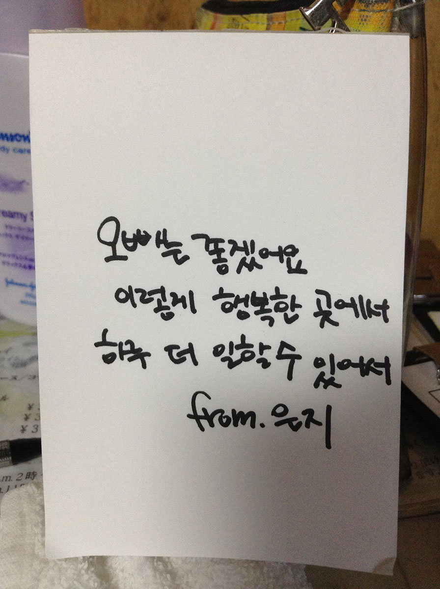 저보다 하루 더 일찍 그만둔 동생이 남겨놓고 간 쪽지입니다.