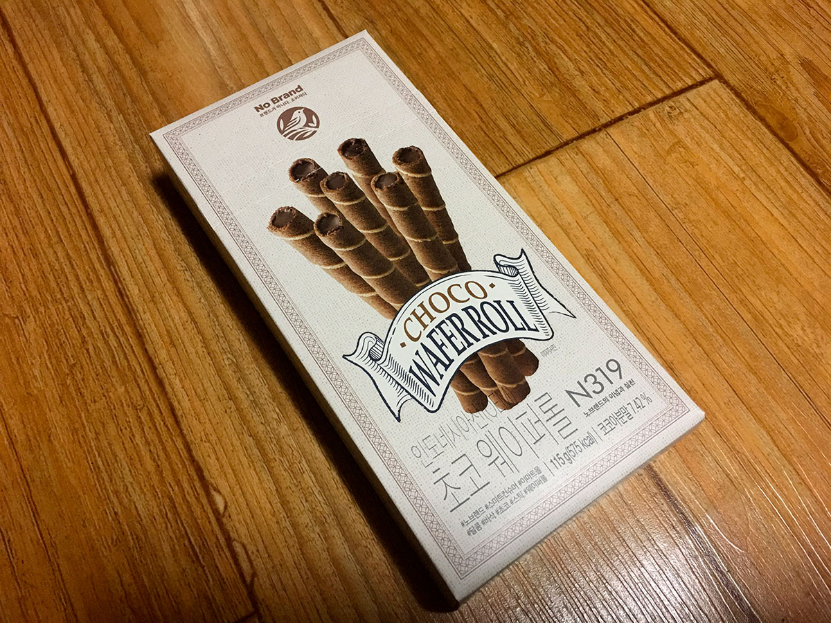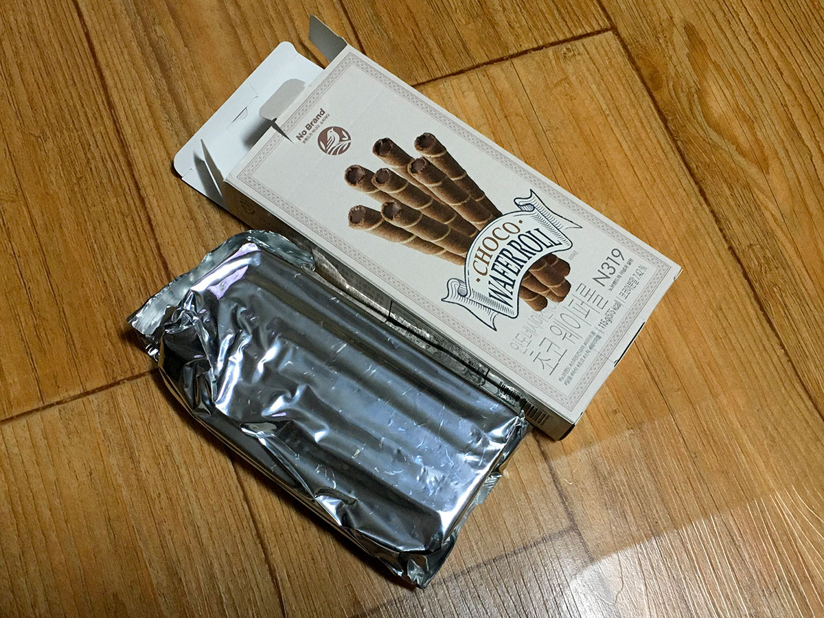 제품의 번호를 보면 지금 소개하는 초코 웨이퍼롤이 N319, 초코피넛 크레페가 N876인 것 보니 초코피넛 크레페가 훨씬 나중에 나온 신제품인 것 같은데.. 노브랜드가 초심을 잃어가는 것은 아니겠죠?
