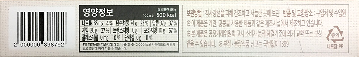 역시 이런 식품들에는 다 비슷비슷한 영양정보입니다.