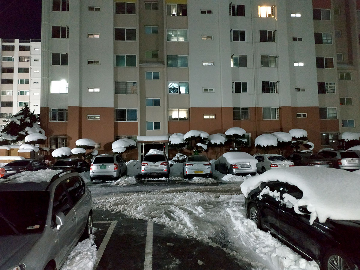 아파트 단지 내에도 이렇게 눈이 쌓여있습니다.