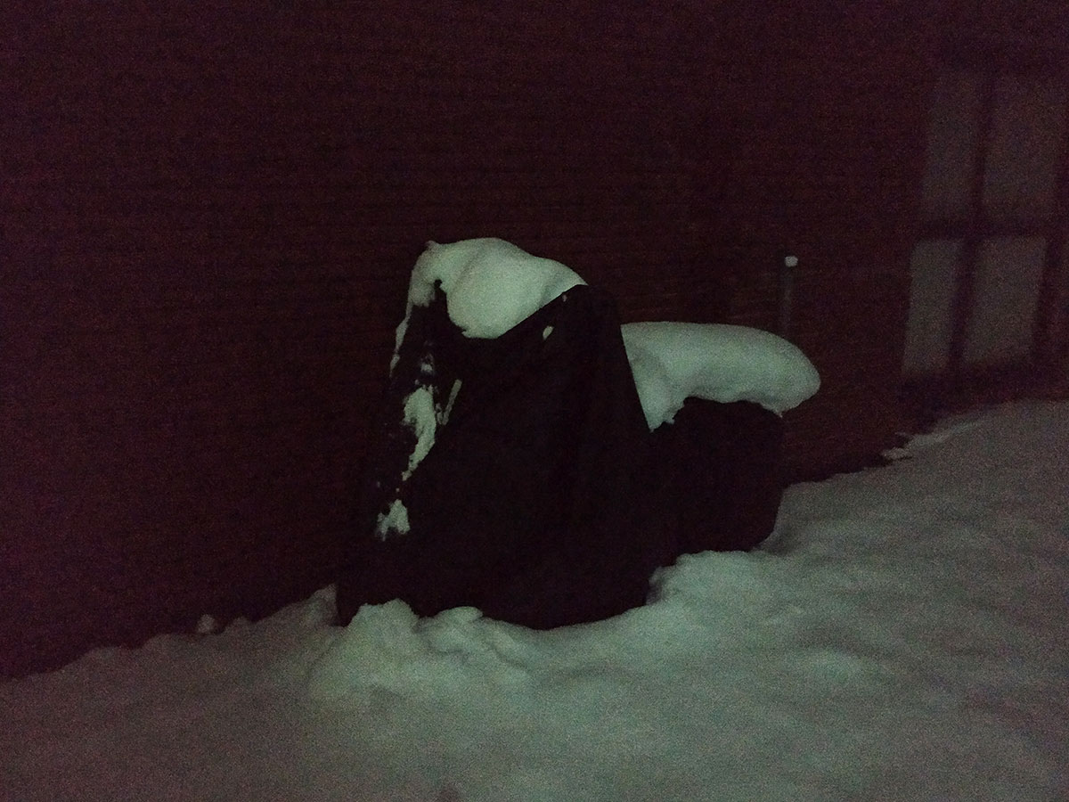 스쿠터에 쌓인 눈이라도 털어내기 위해 스쿠터가 있는 곳으로 왔습니다.