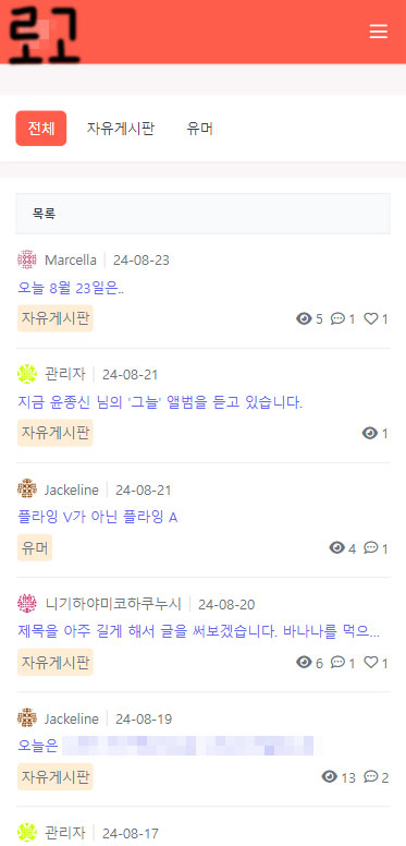 모바일 화면에서는 화면이 이렇게 바뀌게 된다.